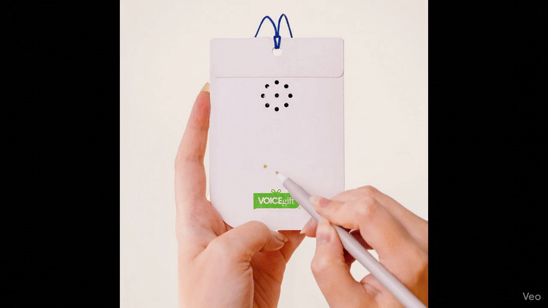 Kartın arkasındaki butona basarak sesini, şarkını veya kısa bir notunu 60 saniyeye kadar kaydedebilirsin.